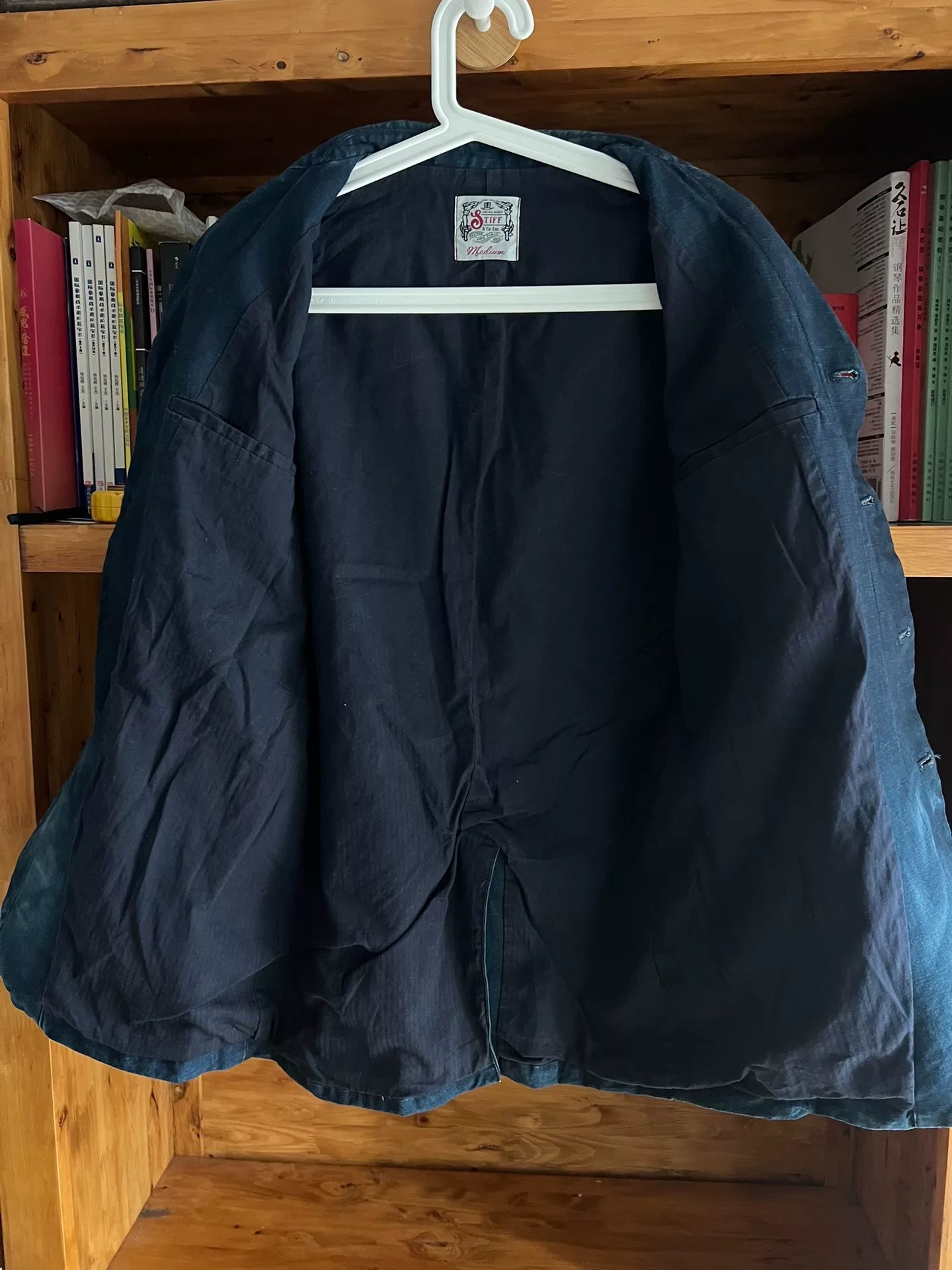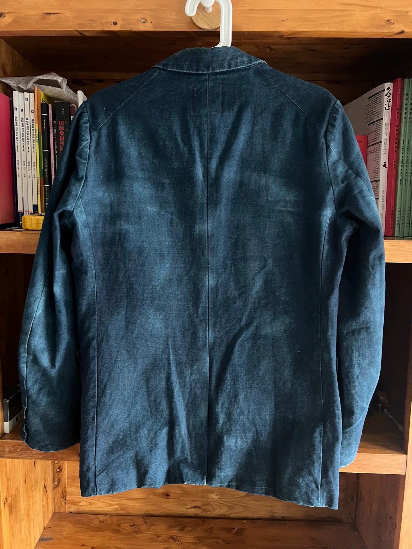 vintage blue dyed cotton linen blazer
