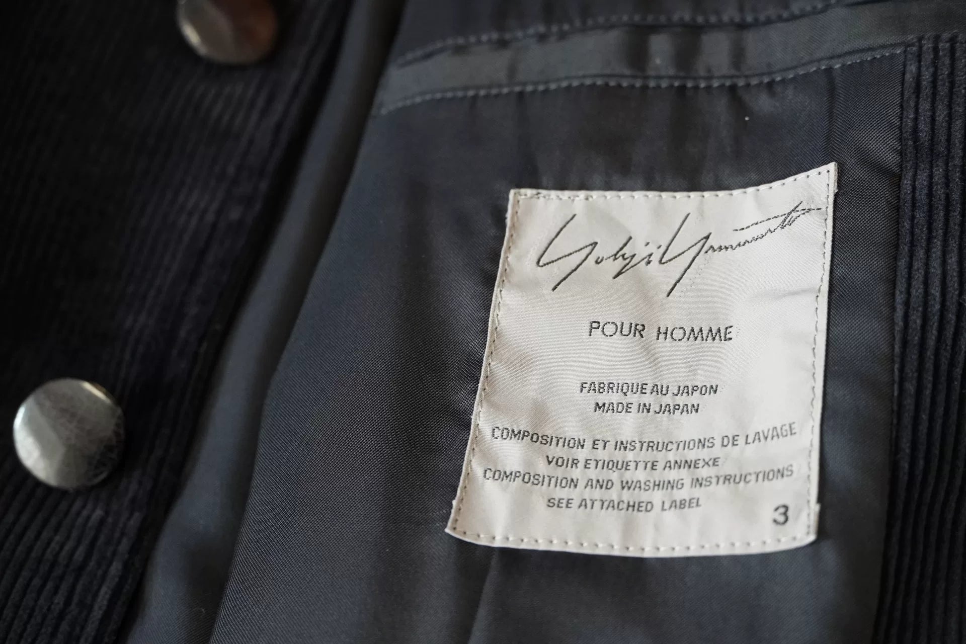 Yohji Yamamoto Black Corduroy Long Jacket
