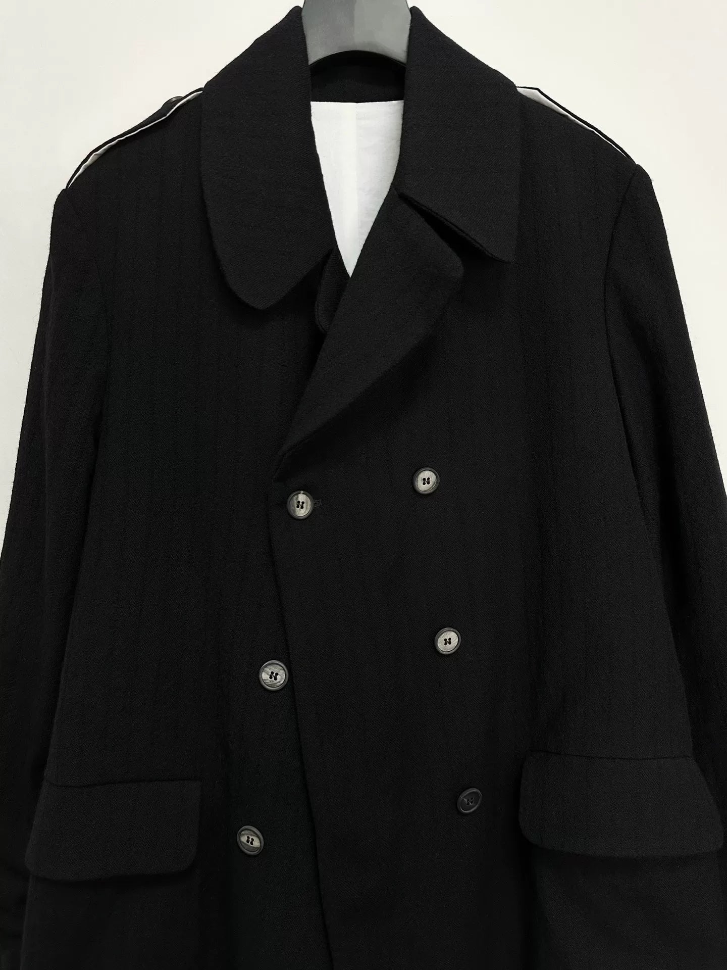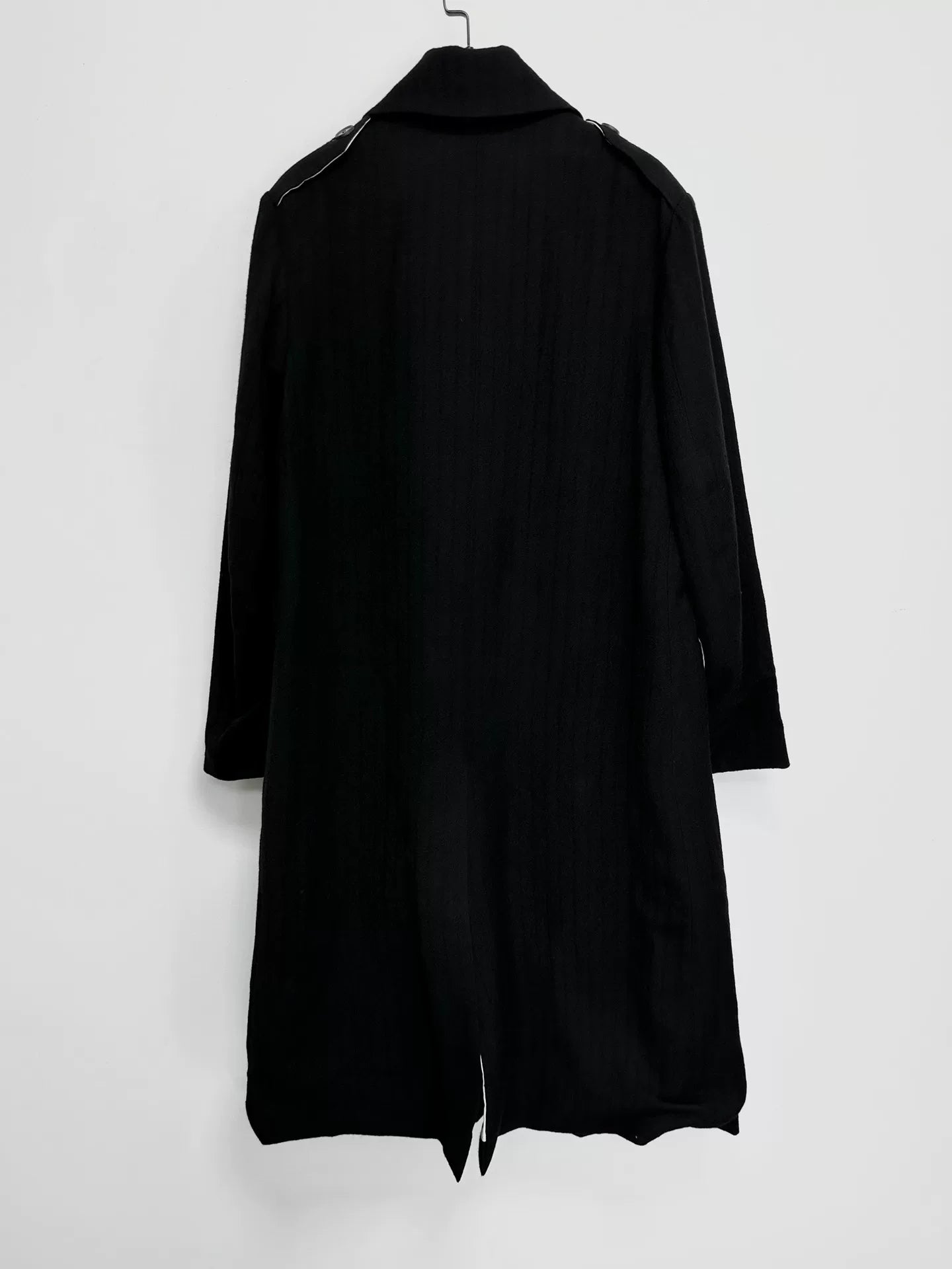 black double-breasted wool long coat