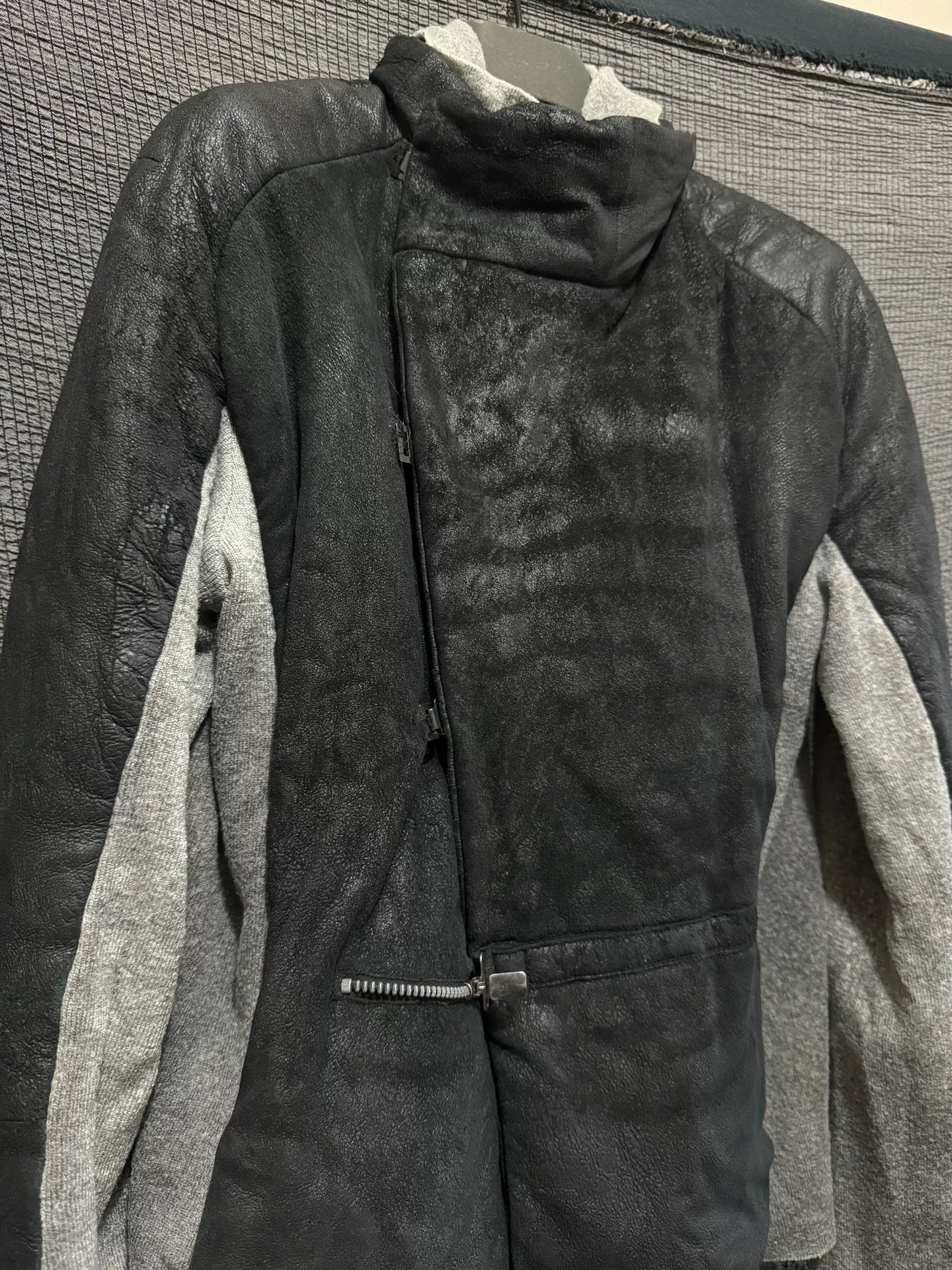 black leather high collar jacket