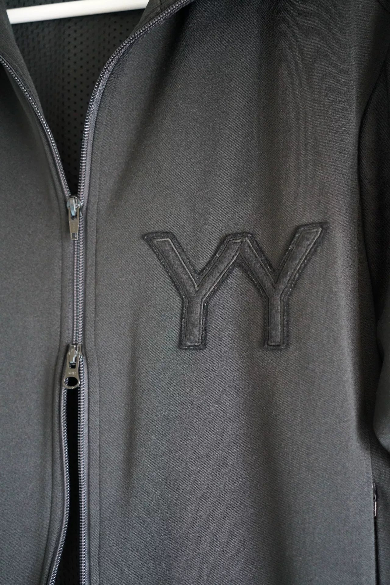 black zip jacket with embroidery details