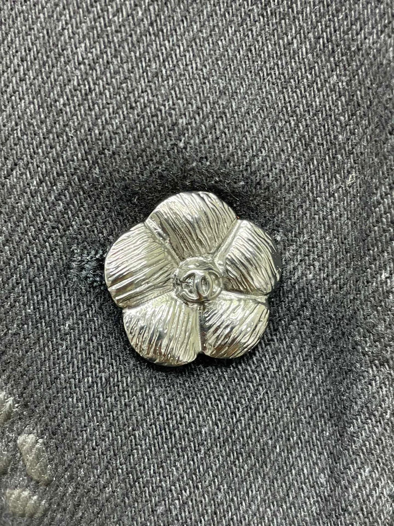 Chanel Black Camellia Denim Blazer