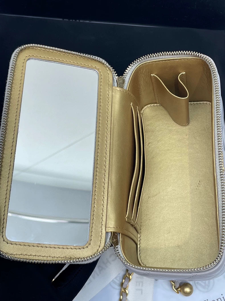Chanel Gray Chain Strap Zip Bag