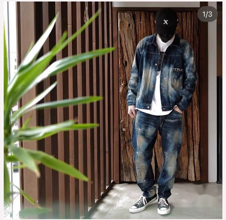 distressed blue starry denim pants