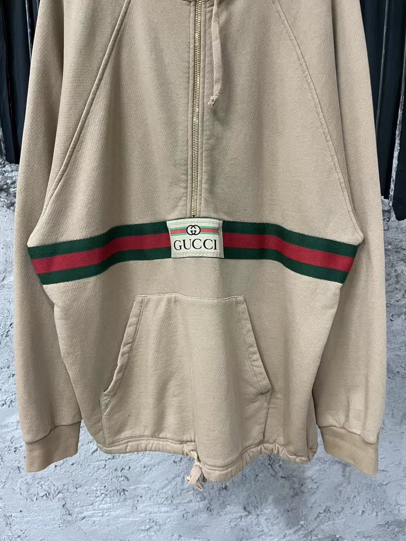 Gucci Khaki Half-Zip Hoodie Sweatshirt
