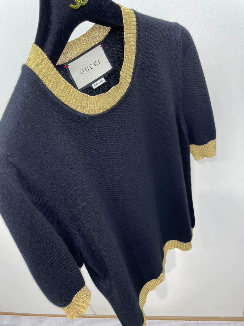 Gucci Short Sleeve Black Knit Top