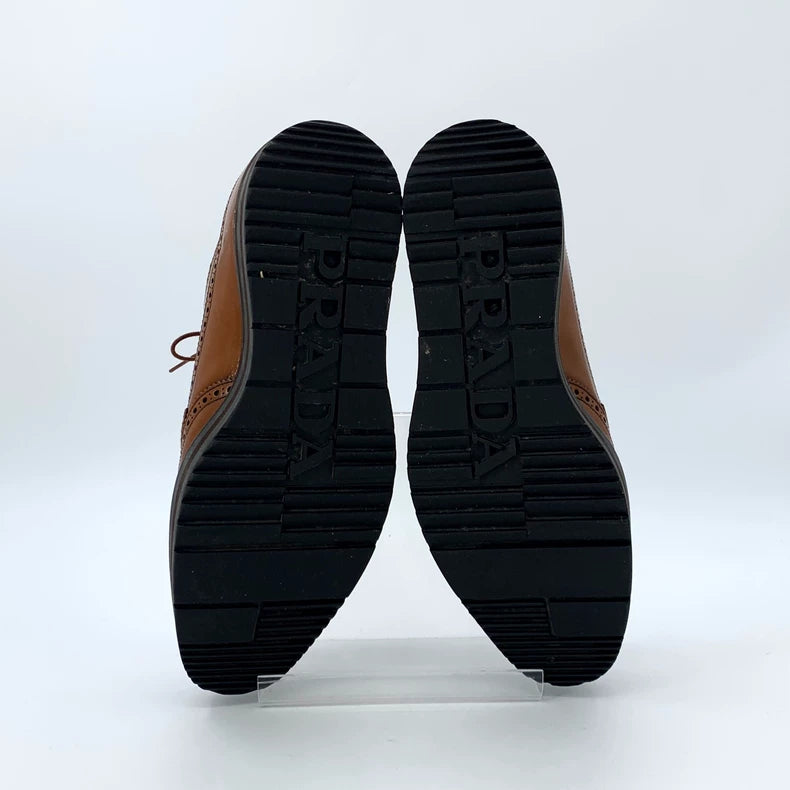 Prada Brown Baroque Lace-Up Thick Sole Shoes
