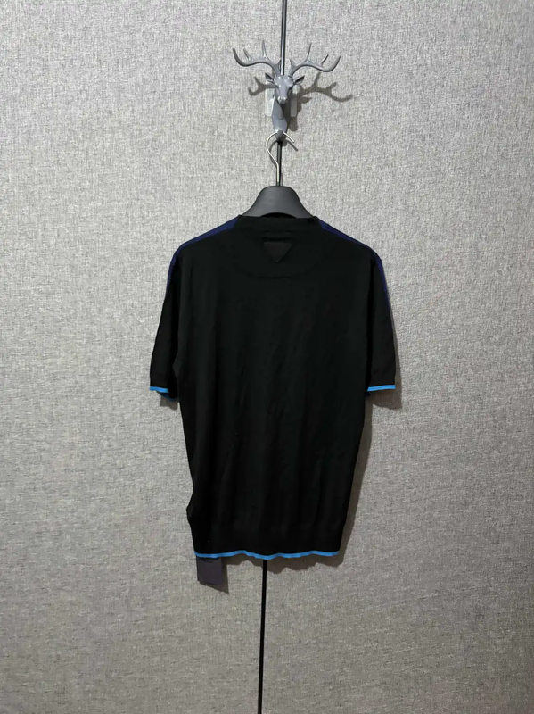 Prada Men's Navy Wool Knit Pullover with Logo