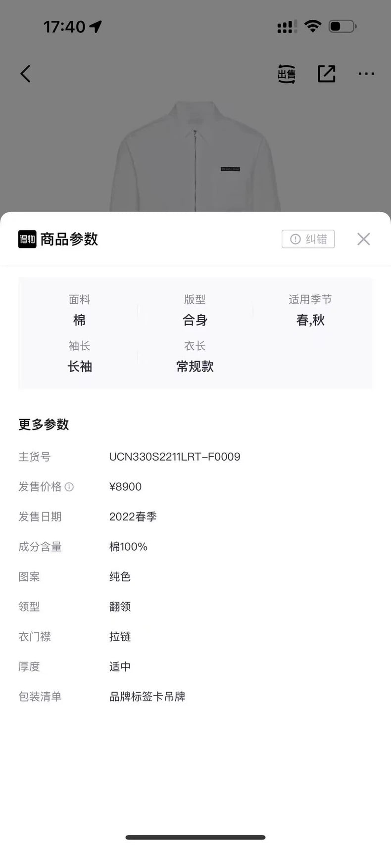 Prada White Zip Collar Long Sleeve Shirt-yf
