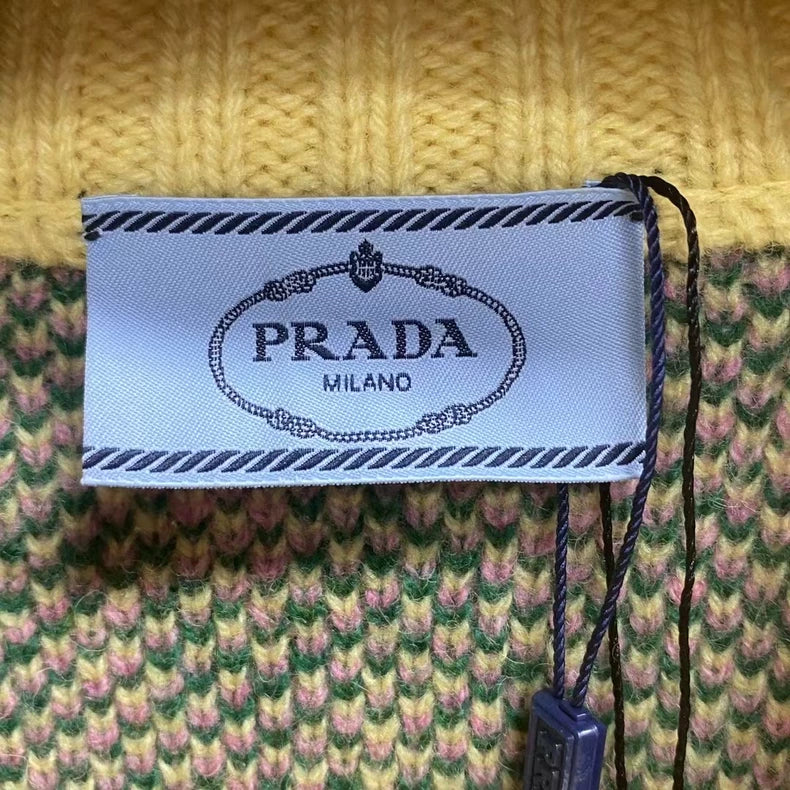 Prada Yellow Green Striped Logo Knit Sweater