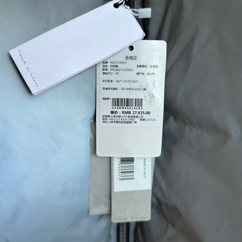 Rick Owens Silver Nylon Men's Down Jacket 0089