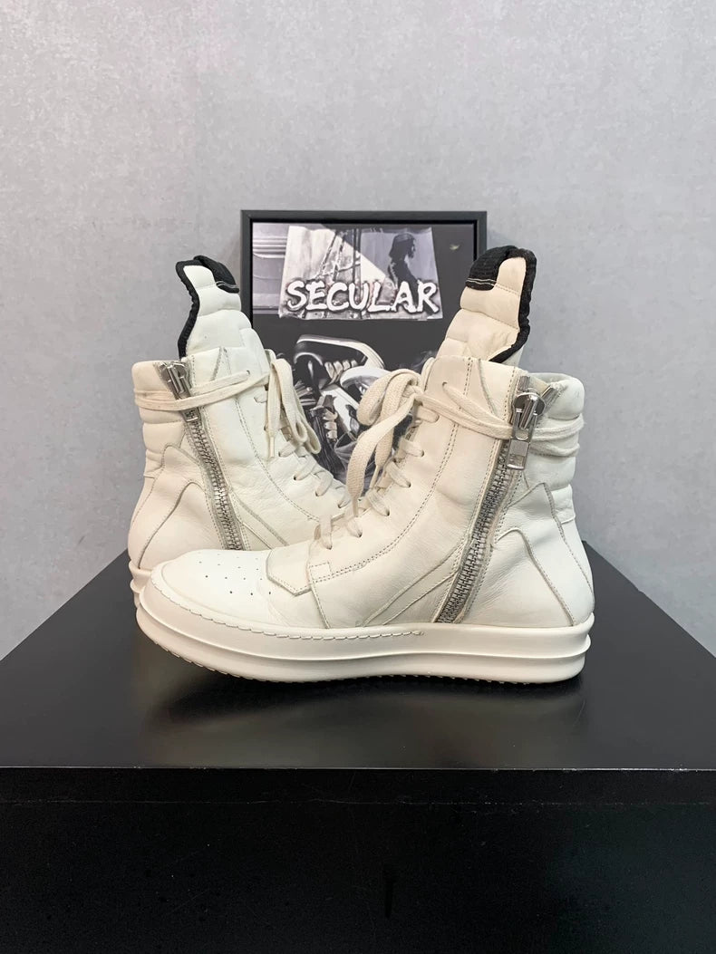 Rick Owens White Geobasket Sneakers-yf
