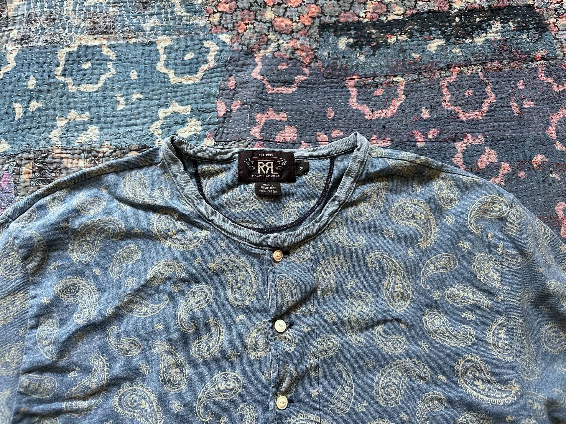 rrl indigo dyed paisley long sleeve tee