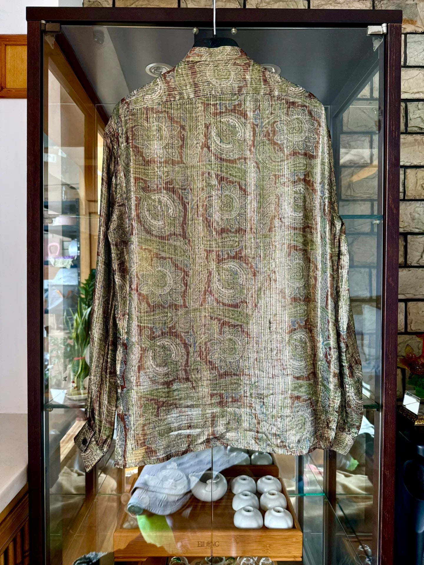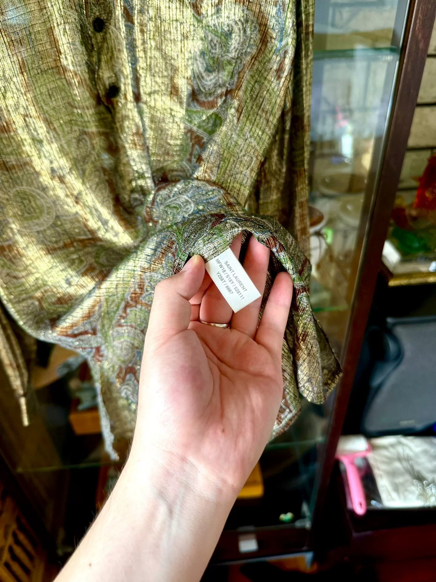 saint laurent silk shirt with golden patterns