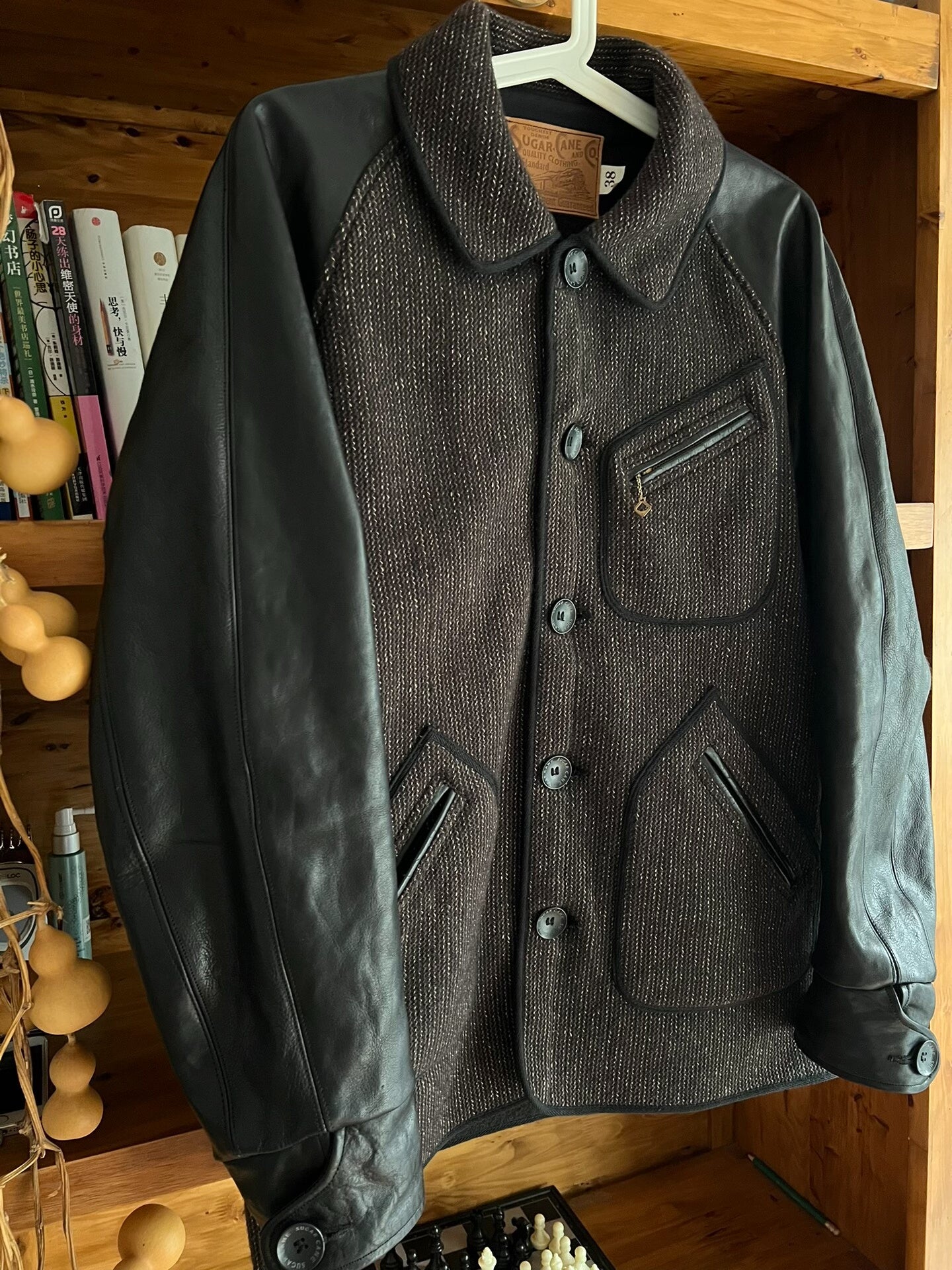 wool leather jacket with vintage details