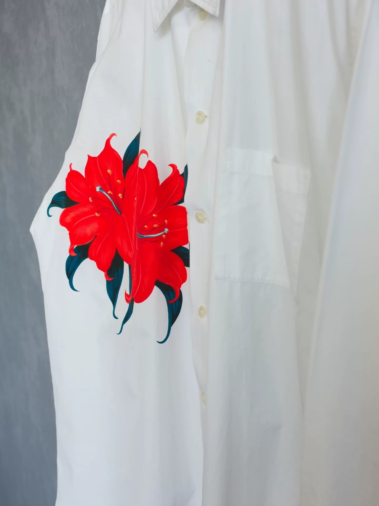 Yohji Yamamoto Red Floral Long Sleeve Shirt